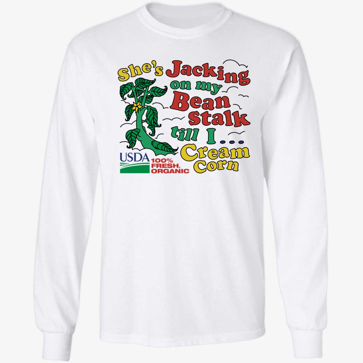 She’s Jacking My Beanstalk Till I Cream Corn Hoodie. All Product make in the USA. Shipping by UPS, USPS. HIGH-QUALITY SHIRT: proudly printed in the USA, using eco-friendly inks to make it a stylish and comfortable shirt to wear! All sizes and all colors are available in our shop. Please refer to our measuring size guide in the pictures before you order! Thank you so much! NOTE: The design will be tweaked to match the shirt color you choose. If there’s any issue, please feel free to contact us, we will help you at our best!